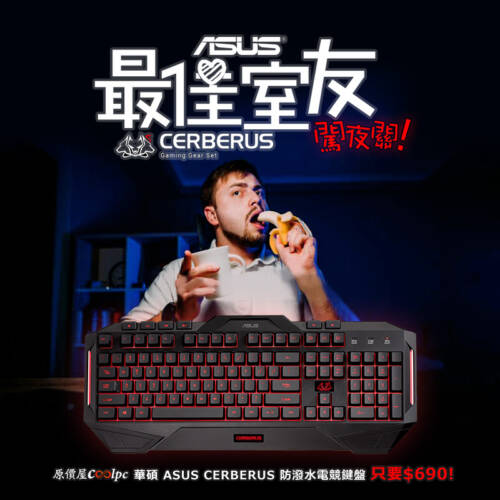 半夜邊吃邊打就要用這把!ASUS CERBERUS 防潑水電競鍵盤只要$690!