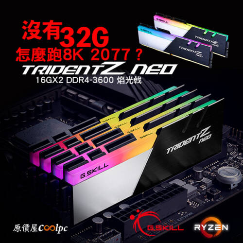 沒有32G怎麼跑8K 2077?趕快買芝奇Trident Z neo 16Gx2 DDR4-3600焰光㦸!