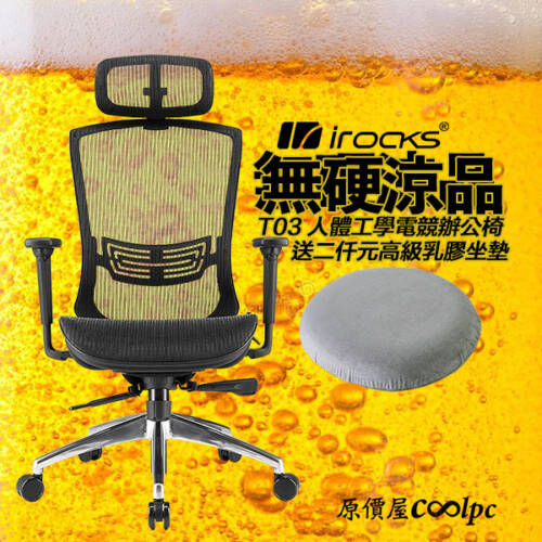 無硬涼品irocks T03電競辦公椅送兩仟元防痔圓形乳膠坐墊!