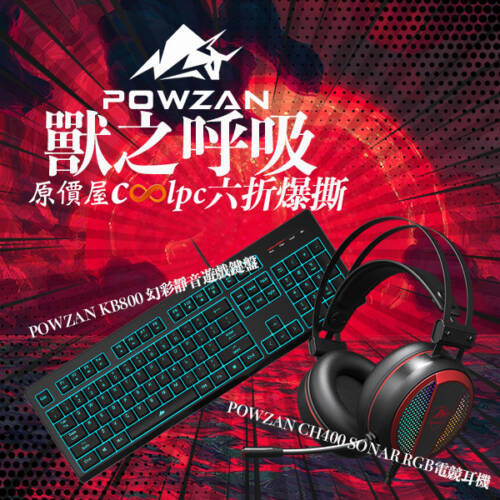 POWZAN獸之呼吸六折爆撕!KB800幻彩鍵盤/CH400 SONAR RGB耳機!