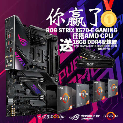 你贏了!ROG STRIX X570-E GAMING任搭AMD Ryzen CPU送2200元XPG超頻記憶體!