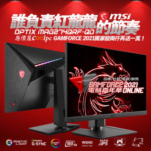 你負責紅龍龍的節奏!MSI MAG274QRF-QD在GAMFORCE 2021砍兩仟再送一萬!