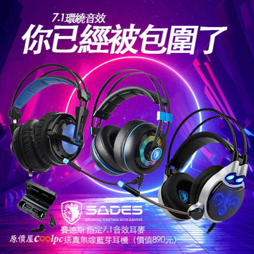 你已經被包圍了!7.1聲道SADES電競耳機最高殺兩仟再送近仟元TWS真無線藍芽耳機!