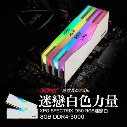 迷戀白色力量!XPG SPECTRIX D50 RGB 8GB DDR4-3000迷戀白破仟!