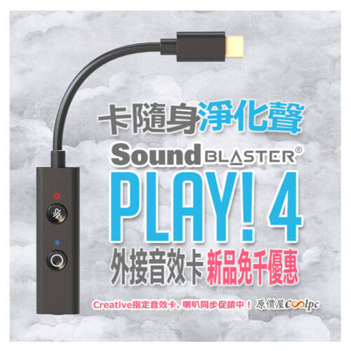 【新品促銷+開箱】抗噪隨聲卡!Creative SB Blaster PLAY!4 音效卡 新品免仟優惠!