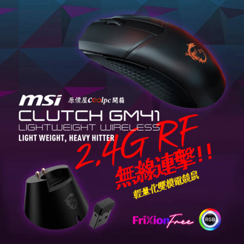 【開箱】2.4G RF無線連擊!MSI CLUTCH GM41 LIGHTWEIGHT WIRELESS 輕量化雙模電競鼠。