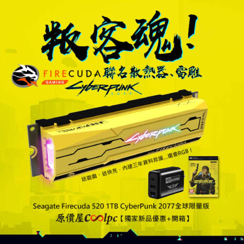 【新品優惠+開箱】叛客專屬塗裝、雷雕、散熱器!Seagate Firecuda 520 1TB CyberPunk 2077 限量版!