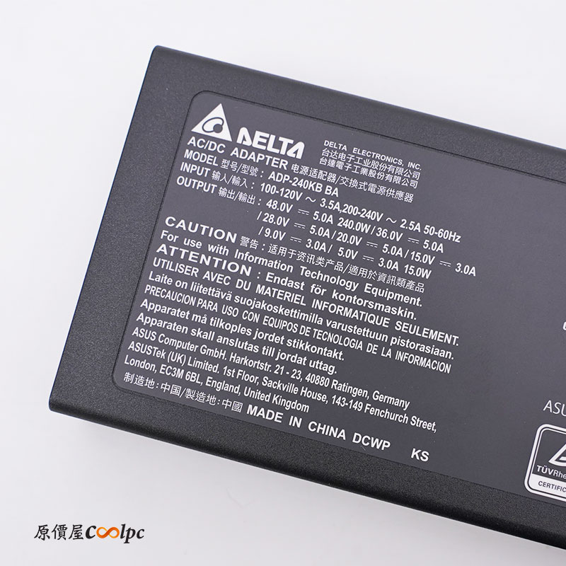 變壓器為台達電子生產,最高輸出可達 240W。