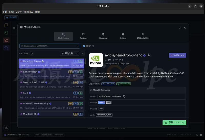 分別下載了 OpenAI gpt-oss 120B、NVIDIA Nemotron 3 Nano 30B、Google Gemma 3 27B、OpenAI gpt-oss 20B 四個訓練好的大型語言模型,內建 128GB 記憶體直接使用 120B 參數模型,也不是問題!