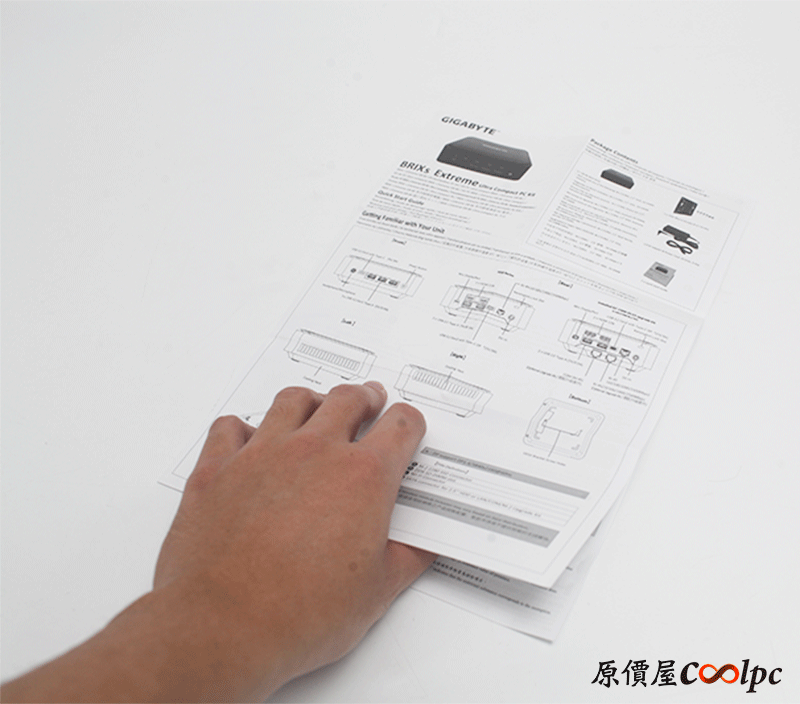打開囉!紙盒泡棉和防刮包材都沒少,包裝得相當安全,裡面會有BRIXs EXTREME小主機以及專用的變壓器電源線材,VESA規格壁掛背板,還有產品說明書與安裝螺絲包。