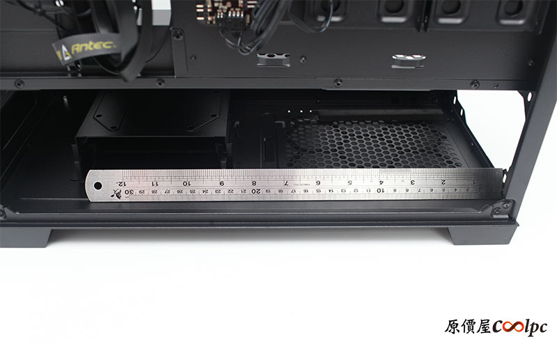 底部先來看看電源艙的位置,DF700 FLUX的電供長度大約是20.5cm,實際丈量應該是已經加入線頭的長度,再大可能就會被硬碟架擠壓。