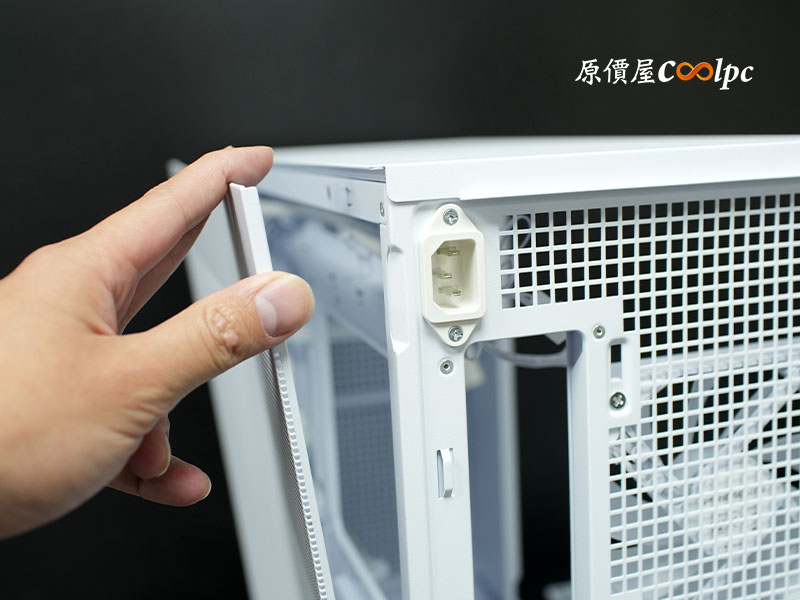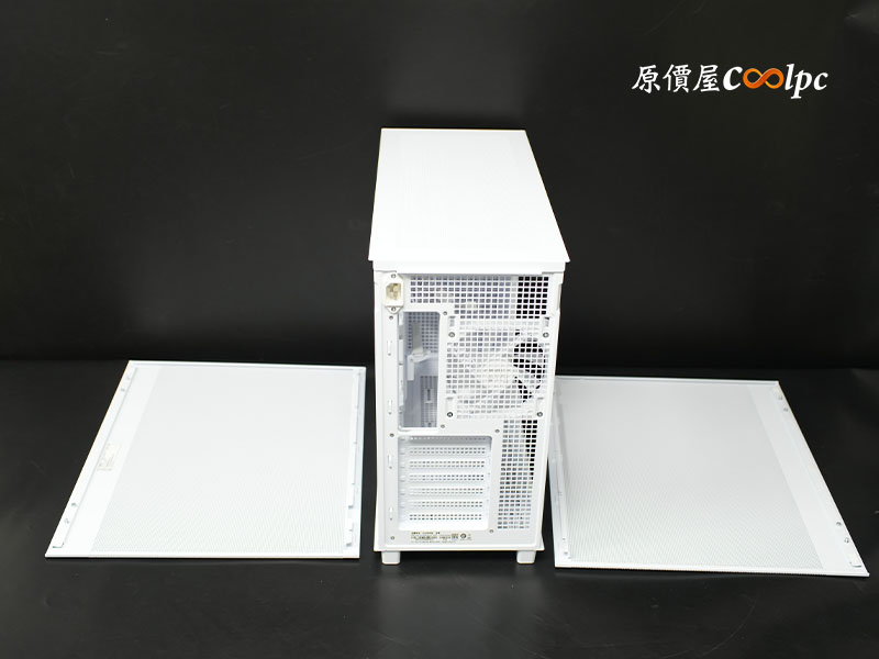 兩側側板均採用免螺絲快拆機構,僅需從邊緣輕輕向外扳開即可卸下。