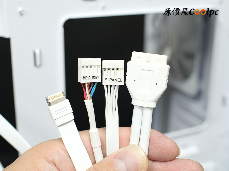 機殼線材包含HD AUDIO、POWER SW、POWER LED±、USB 19pin、USB 20pin。