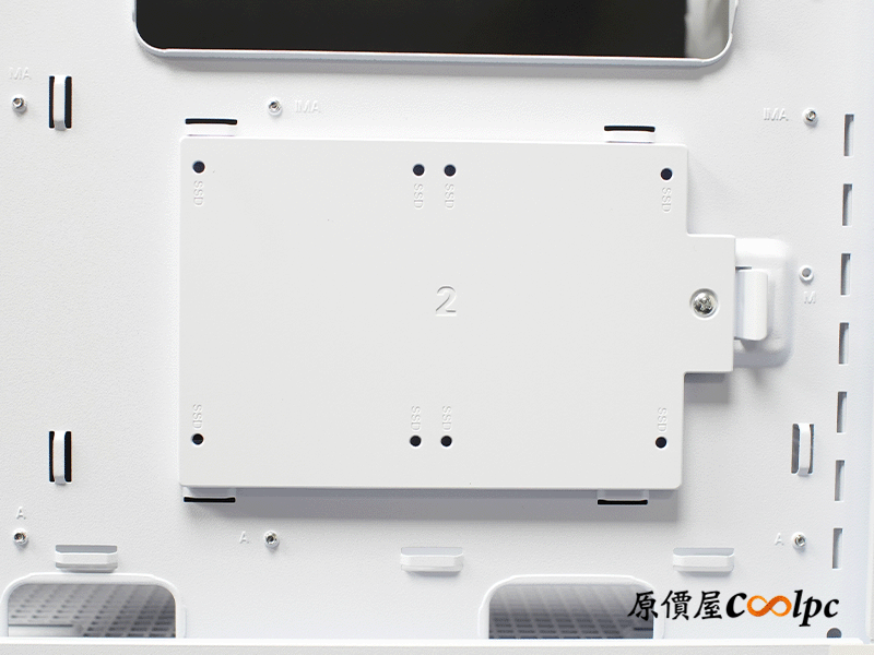 右下硬碟支架可安裝兩顆 2.5 吋小硬碟。