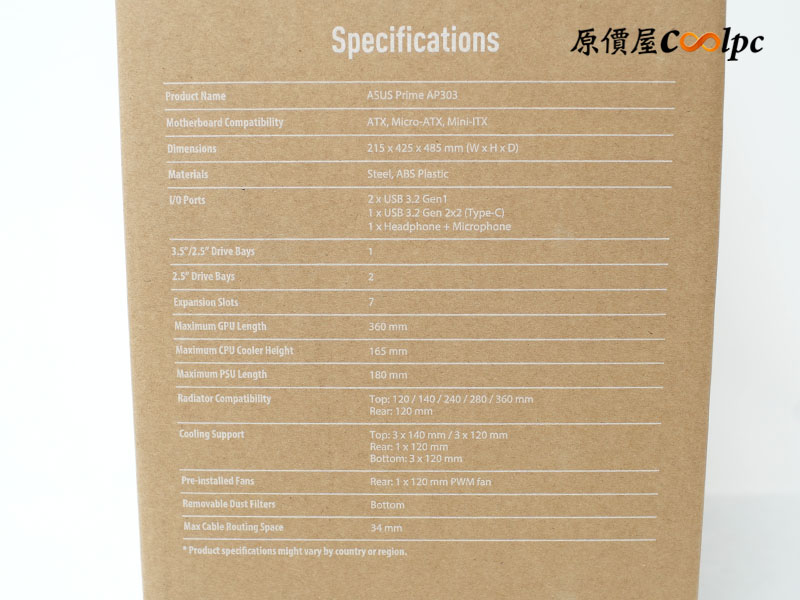 這次華碩 Prime AP303 是繼 AP201 之後的新作!雖然體積稍微增加到 44 公升,但換來的卻是支援 ATX 主機板的相容擴充。長矮身形的緊湊設計讓它在精巧的體態下,竟然能同時裝進 360mm 大型水冷與長達 360mm 的巨無霸顯卡,甚至連 180mm 的大瓦數電源也能輕鬆搞定,選硬體零件幾乎不需要任何妥協。散熱方面更是別出心裁,全機殼佈滿網孔設計,讓空氣流通效率高嚇嚇叫,完全不用擔心裡面熱氣悶著。值得一提的是華碩做了很多小升級,像是底部支援 3 顆 120mm 風扇、針對 RTX 50 系列專用支架,以及標配的 15A UL 認證電源線,擴充與安全性再升級。目前上市的共有四款型號,網孔版黑/白兩款,以及 TG 玻璃透測黑/白兩款,看名稱就知道只差在側板不同,想兼顧 RGB、曬零件跟通風也是不錯的選擇。各位有興趣家們歡迎到全台原價屋門市、線上估價系統,或是原價屋蝦皮商城下單唷。
