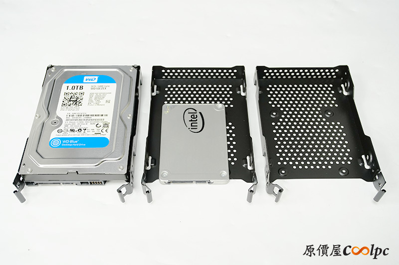 底部附上硬碟支架一大一小,都是3.5″/2.5″通用設計,讓玩家針對需求自由變化。