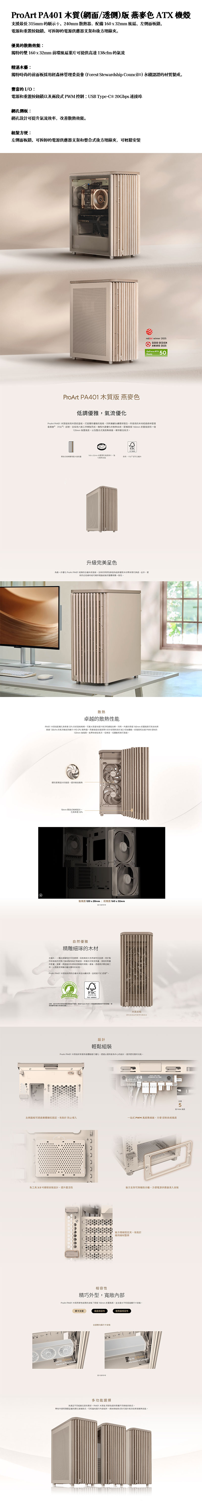 .華碩 ProArt PA401 Wood 燕麥色 網狀版(Mesh) 網孔側板/ATX $3290