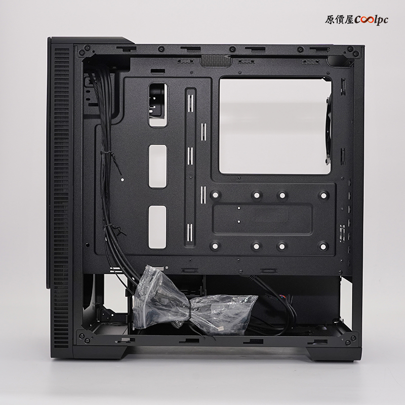 機殼內側也是相當寬闊,提供6個I/O出線孔設計,主機板背面則是兩個2.5吋硬碟架。