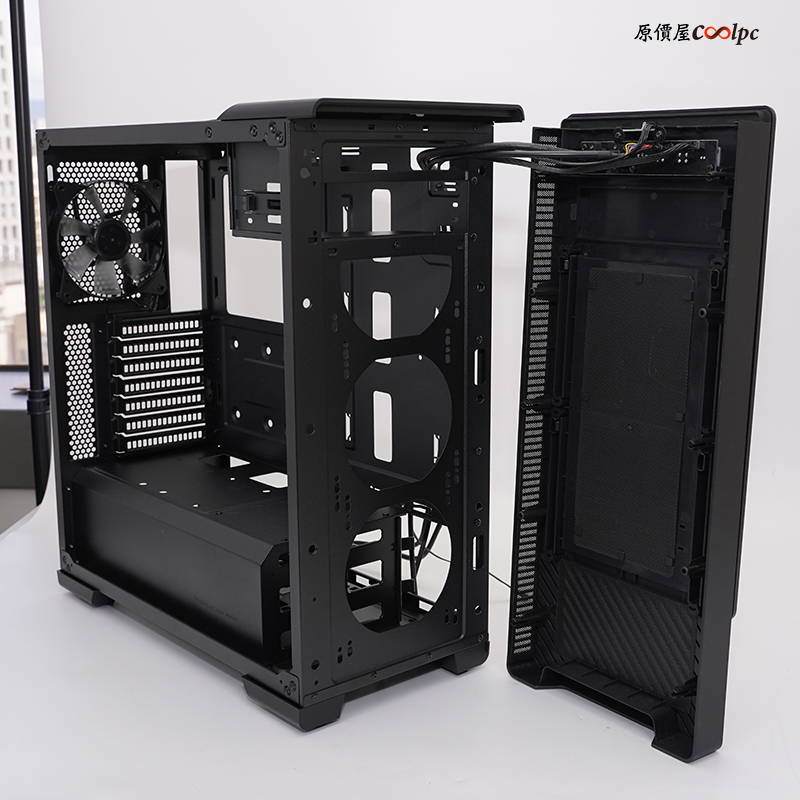 側面的部分採用黑色鋼板設計,可以看到面板右側有提供進風網孔設計,增加前面板進風量。