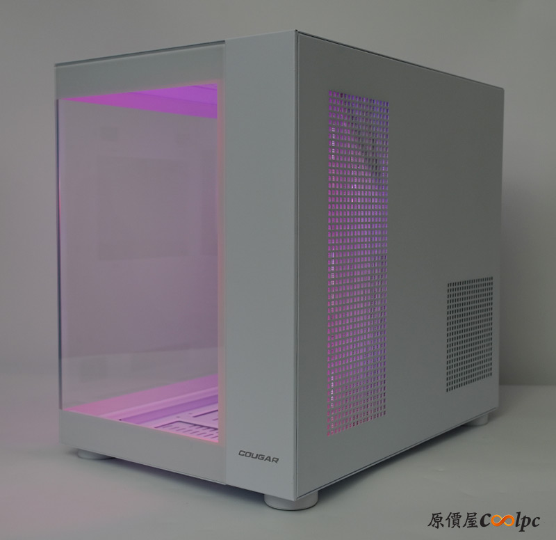 @2024/08/21 ,12:07雙艙體設計,雙面玻璃全景透側,連前面的立柱都拿掉了!DIY玩家一定會喜歡這款COUGAR FV150 RGB機殼,它就是時下最流行的海景房格局,除了可以盡情展示內部零件,有RGB燈光的也能將視覺效果升級,而且這類型機殼通常擴充性都非常好,支援ATX/M-ATX/Mini-ITX等規格主機板,360/280/240mm主流尺寸的水冷都能裝,如果不裝水冷,散熱器高度有180mm,大多數塔扇也都放得進去。顯卡長度達到400mm,三風扇高階款式沒問題,還能夠垂直安裝增加觀賞性(須自備PCIe延長線)。另外電源長度也有210mm,空間基本上非常充裕了。散熱更不用說,先是提供4顆120mm ARGB風扇(側3後1),機殼上下部都有開孔透氣,並可以額外擴充最多6顆風扇輔助,還有多處防塵濾網避免影響散熱效率。目前有推出黑、白、粉三種版本,今天為大家開箱的是白色款,話不多說,趕緊開始開箱環節吧!