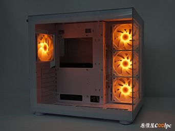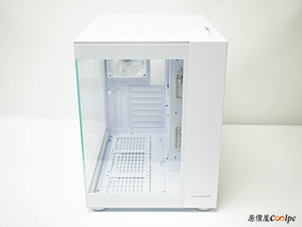 內部支援ATX/M-ATX/Mini-ITX尺寸主機板,拜分艙結構與雙玻璃透側所賜,空間非常的明亮且寬敞,加上電源線材與硬碟等都會藏在後面,也能增加外觀整潔度。