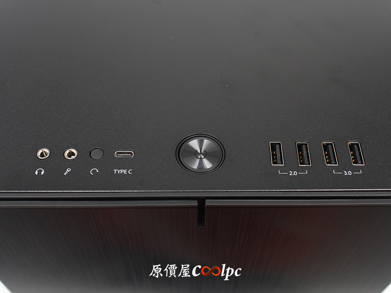 頂端I/O配置很全面!由左至右提供音源輸出輸入孔、RESET鈕、USB 3.2 Gen2(Type-C)、POWER鈕、USB 2.0、USB 3.2 Gen1介面。