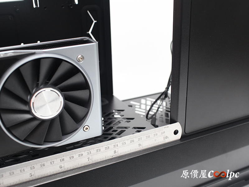 測量VGA顯示卡支援性,預設可安裝467mm,若前端風扇移除,最長可安裝到491mm,這個空間我想不論哪張卡王都可以裝上了!