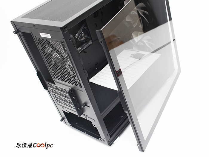 接下來就是拆下玻璃側板來看看內部構造了,比較特別的是螺絲的設計是在後端。
