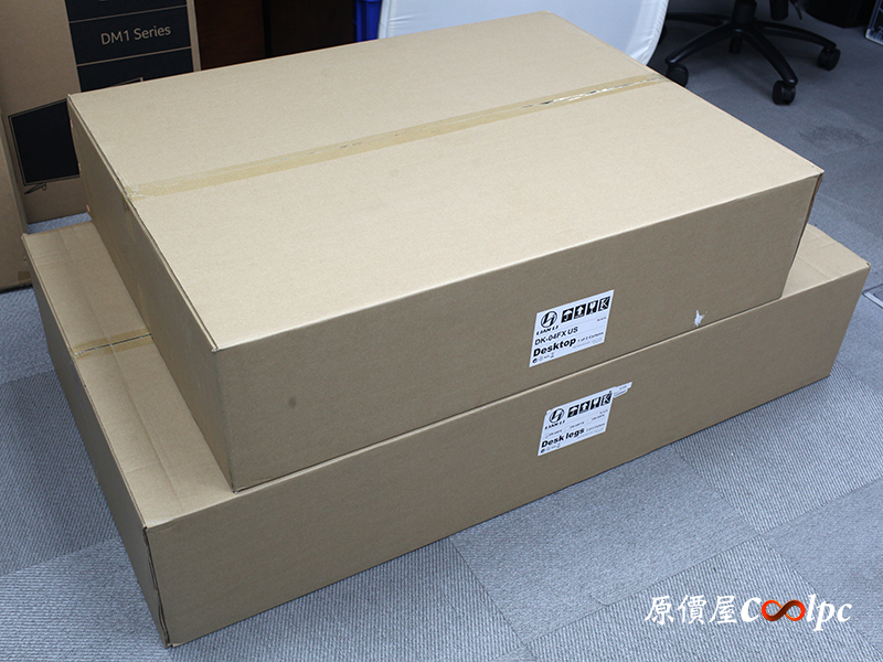 廠商寄兩箱超重的箱子過來,包裝就很簡單的環保材質紙箱設計,上頭有Lian Li Desktop標籤字樣,而內容物分別是聯力Lian Li DK-04F電腦桌的機殼、玻璃部件以及腳架部件。