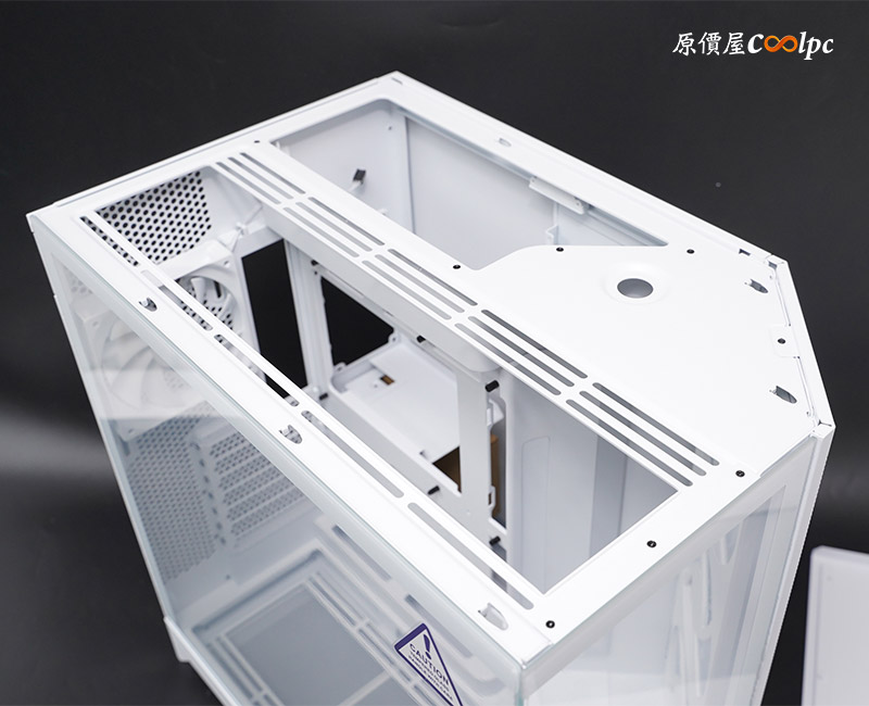 機殼上蓋三分之二為網孔設計,讓水冷或風扇可以排風。