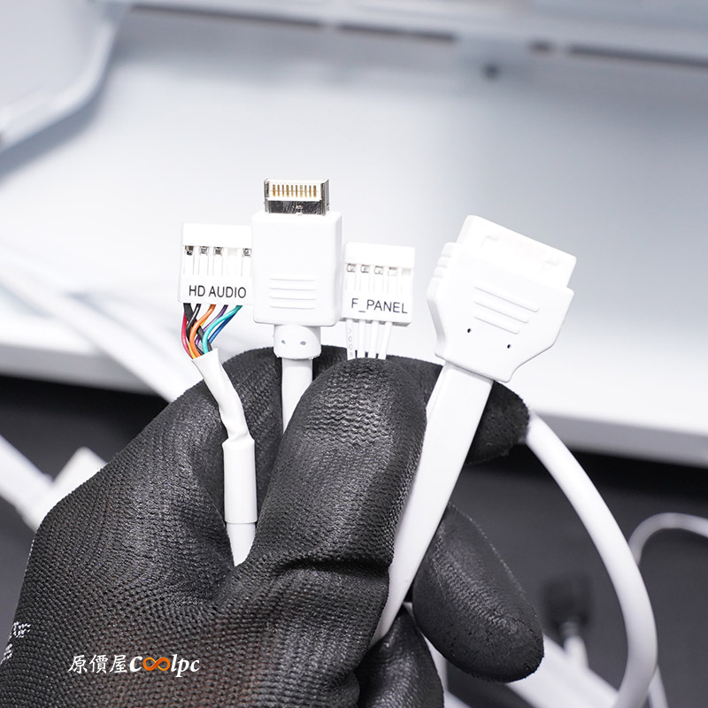 I/O 線材有 HD AUDIO、USB3.2 Gen2x2 Type-C、F_PANEL、USB3.2 Gen2 線材。