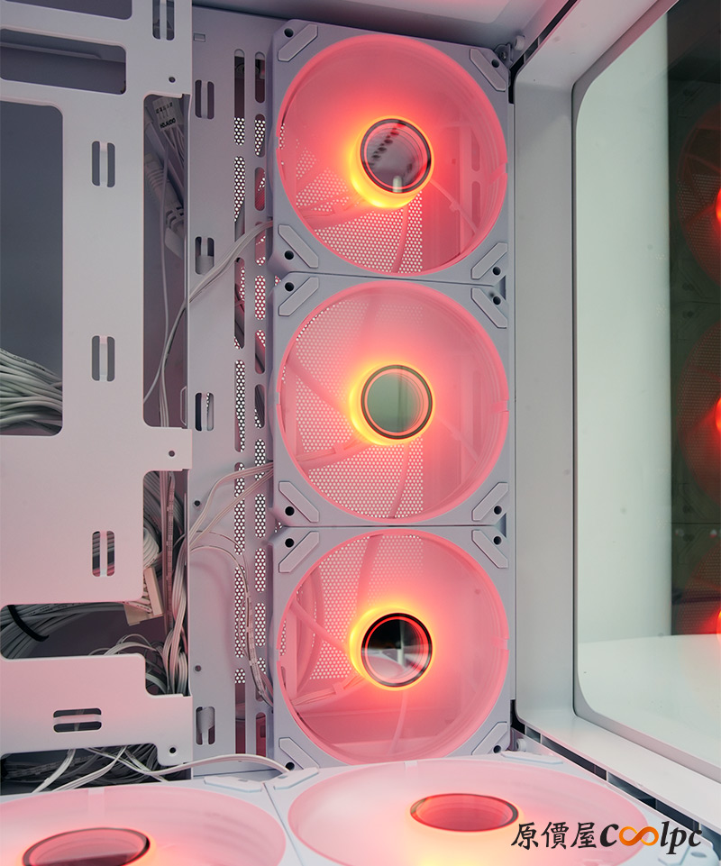 最後點燈環節囉!反葉扇最近也是越來越流行,搭配這種海景房機殼就是讚,270度全景搭配曲面玻璃,又沒有前面的立柱,視野都不間斷。