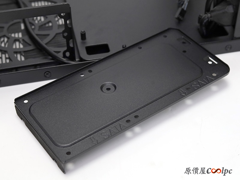 而在主機板安裝背板旁的支架則能夠用來固定兩顆儲存裝置。