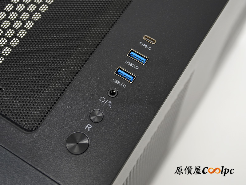 I/O 部分提供電源開關、重啟鍵、音源複合孔、USB3.0、Type-C 3.2 Gen2。