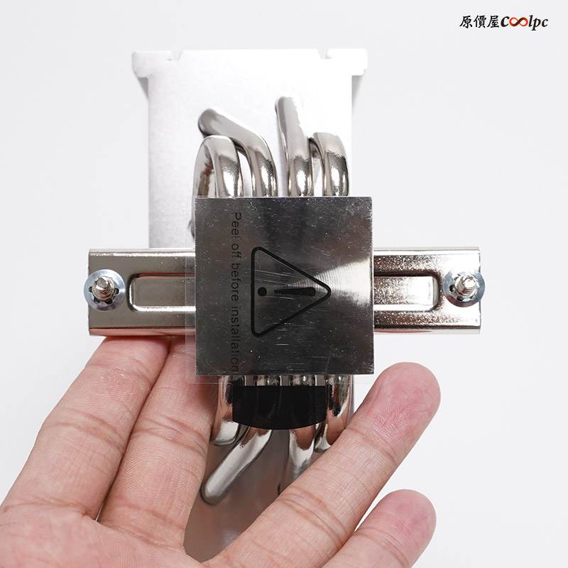接觸面採用6 根 6Φ 熱導管銅底錫焊,底部還有一層膠膜,安裝前請務必將它撕下來,避免影響散熱效果。