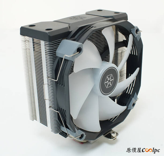 塔體由全鋁散熱鰭片堆疊而成,寬度特別加大到14cm,其中可以看到銅製熱導管穿梭而過。