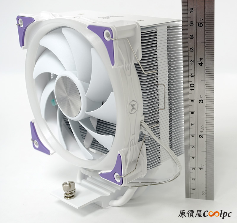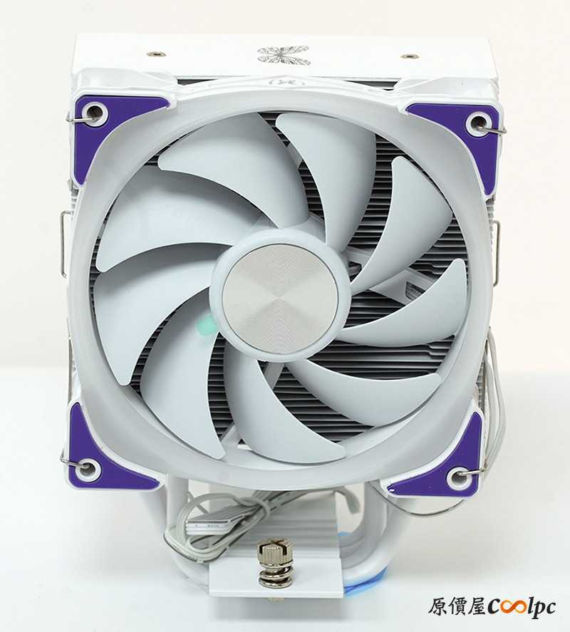ST4 ARGB登場,白色的散熱器本體與風扇,風扇的防震膠墊還是SUPERFLOWER振華的招牌紫色,直接一個弗利沙配色XD,真是非常有記憶點。單塔單風扇設計,尺寸僅有120*70*153mm,外型小巧精美,鰭片排列的方式有交錯風格,看上去更有設計感。