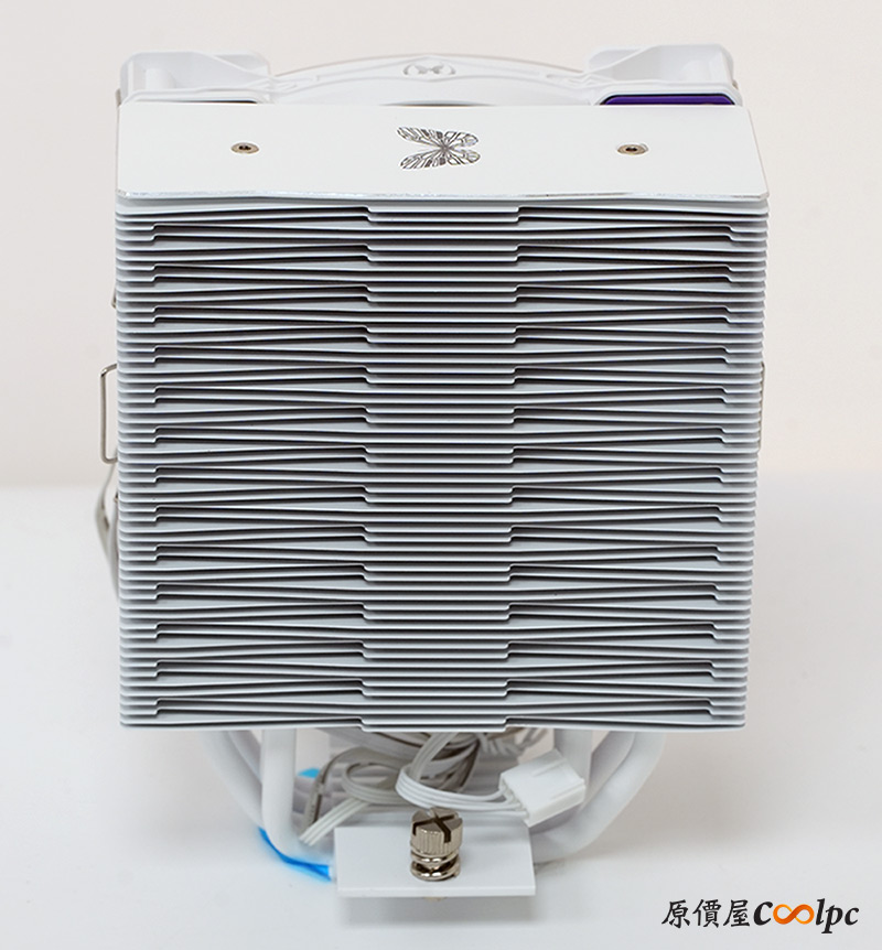 頂部用鋁製頂蓋將熱導管遮住,並且印上SUPERFLOWER蝴蝶標誌,簡約設計相當有質感,而且可以看到一旁的風扇外框也是有蝴蝶造型的喔。