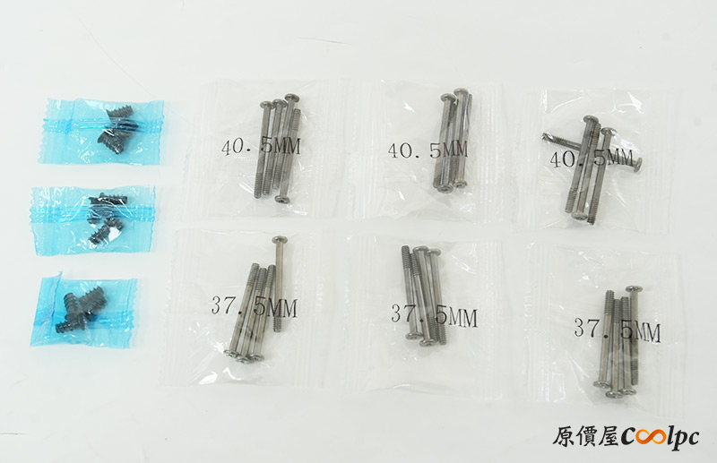 光是風扇螺絲就有3種,最常見的短螺絲以外,還附上37.5mm、40.5mm長螺絲,直接給好給滿。