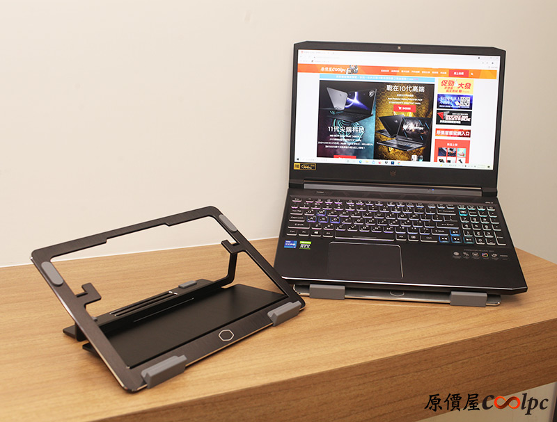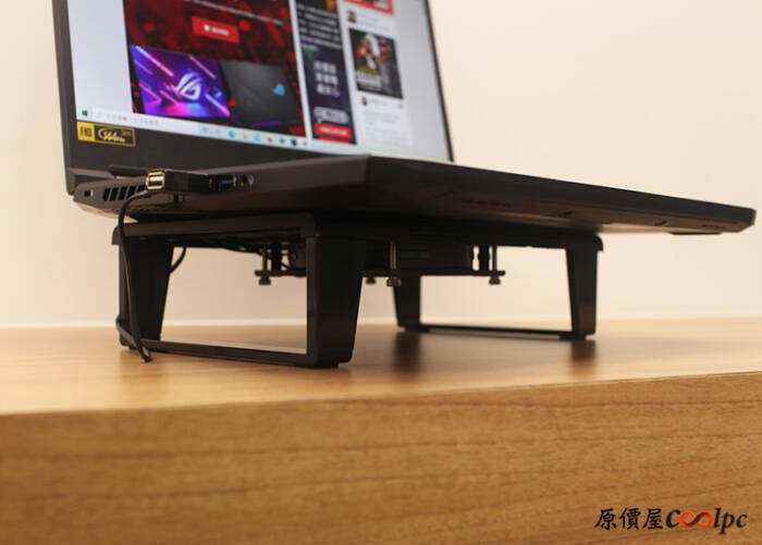 放上去除了散熱也有增高墊的效果,不過CONNECT STAND本身不是專為筆電使用,所以並沒有特別將筆電固定的設計,大家如果要這樣用得注意不要玩得太激烈讓筆電掉下來了。