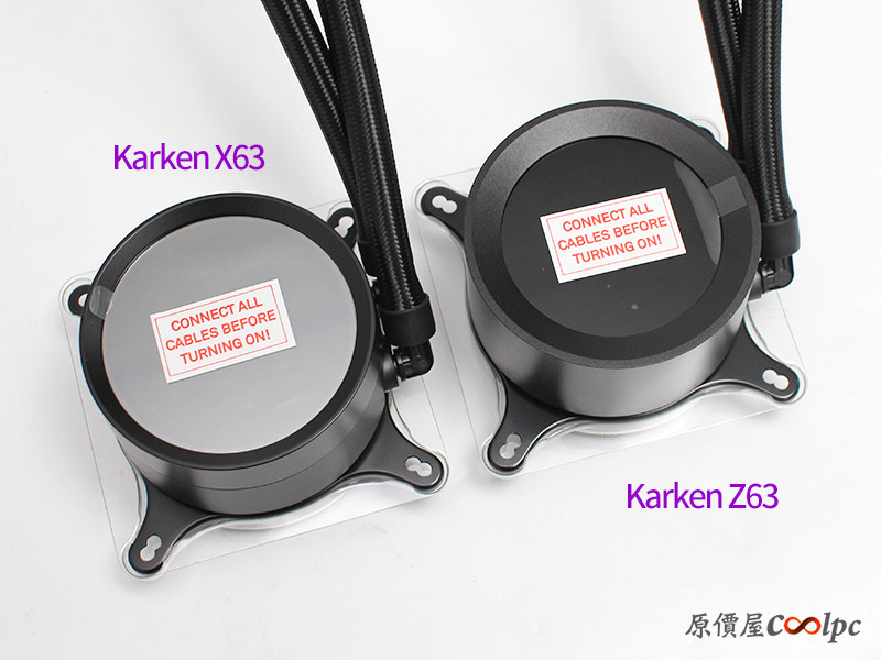 冷頭設計上就可以看到KRAKEN X63與Z63 的差異,首先在X63 部分可以看到邊框相對Z63 看起來更窄,而在實際觸感上Z63 則有比較重的金屬感。