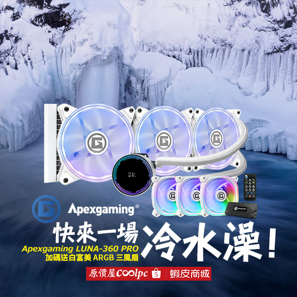 凍結所有的煩惱!Apexgaming LUNA-360 PRO 水冷散熱器仟元首購禮!
