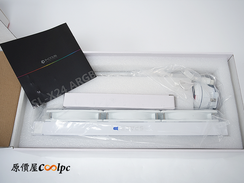 內部使用大量包材保護水冷,配件也都集中收在中間的紙盒裡了,所以打開只會看到水冷、說明書、配件盒唷。
