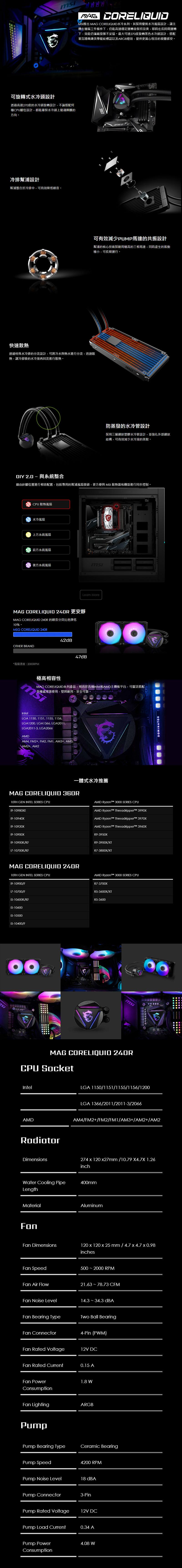 規鄒水噹噹 a 幻彩水龍!MSI MAG CoreLiquid 240R 水冷散熱器!
