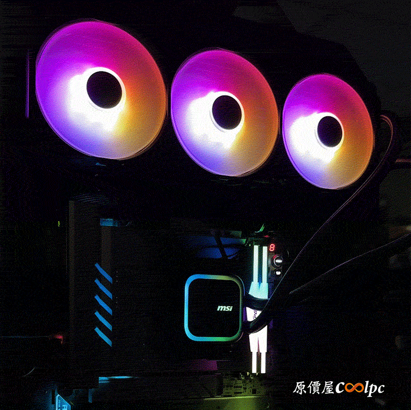先展示一下微星 MAG CORELIQUID A13 360 水冷散熱器上機後的燈光效果。