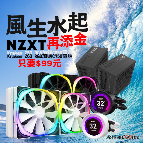 金牌電源$99元銅板價!NZXT Kraken Z53/ Z63 RGB水冷聯手支持你!