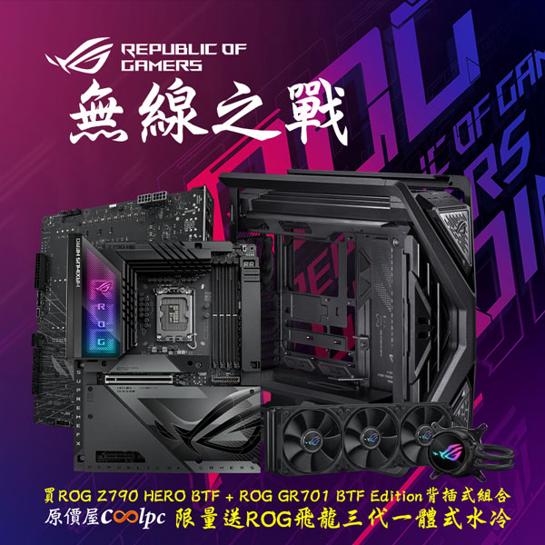 ROG 無線之戰!買ROG MAXIMUS Z790 HERO BTF + ROG Hyperion GR701背插式主板與機殼,加碼送ROG飛龍三代水冷!