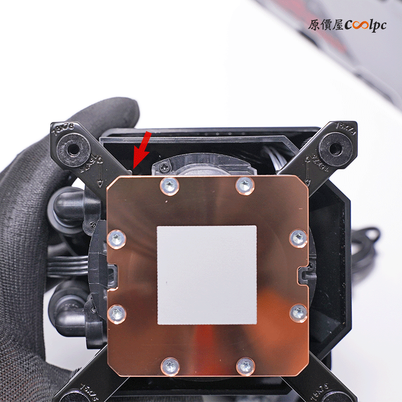 銅底接觸面積為方形設計,可以完整覆蓋 Intel 和 AMD 最新處理器,讓散熱達到最佳化,水冷的鎖孔點也有位移的設計,往外推是給 78 x 78 (LGA 1700/1851)腳位,往內推是給 75 x 75 (LGA 115X/1200) 腳位使用,切記一定要推到正確的位置,否則安裝上會花更多時間在鎖螺絲唷!