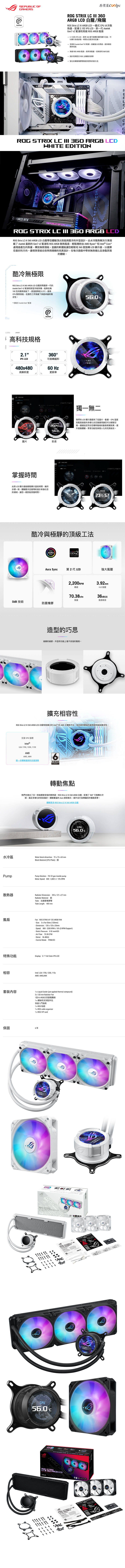 ROG STRIX LC III 360 ARGB LCD White Edition 白龍/2.1吋液晶/6年保 $7990