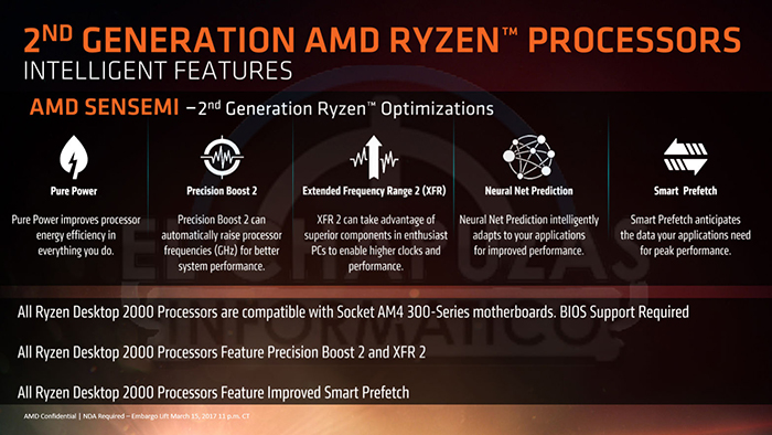 Ryzen 2代具備Pure Power功能,可監督CPU溫度、資源與耗電量等資訊,Precision Boost 2可針對處理器多核心部分提供更穩定及更優異的性能,Extemded Frequency Range 2(XFR)則是提供更穩定的CPU自動超頻技術,Neural Net Prediction及Smart Prefetch則是針對自動化處理以便提高處理器效率,不過我想新系列的重點依然擺在XFR 2 Enhanced Mode、Precision Boost Overdrive以及StoreMI三項技術優化。